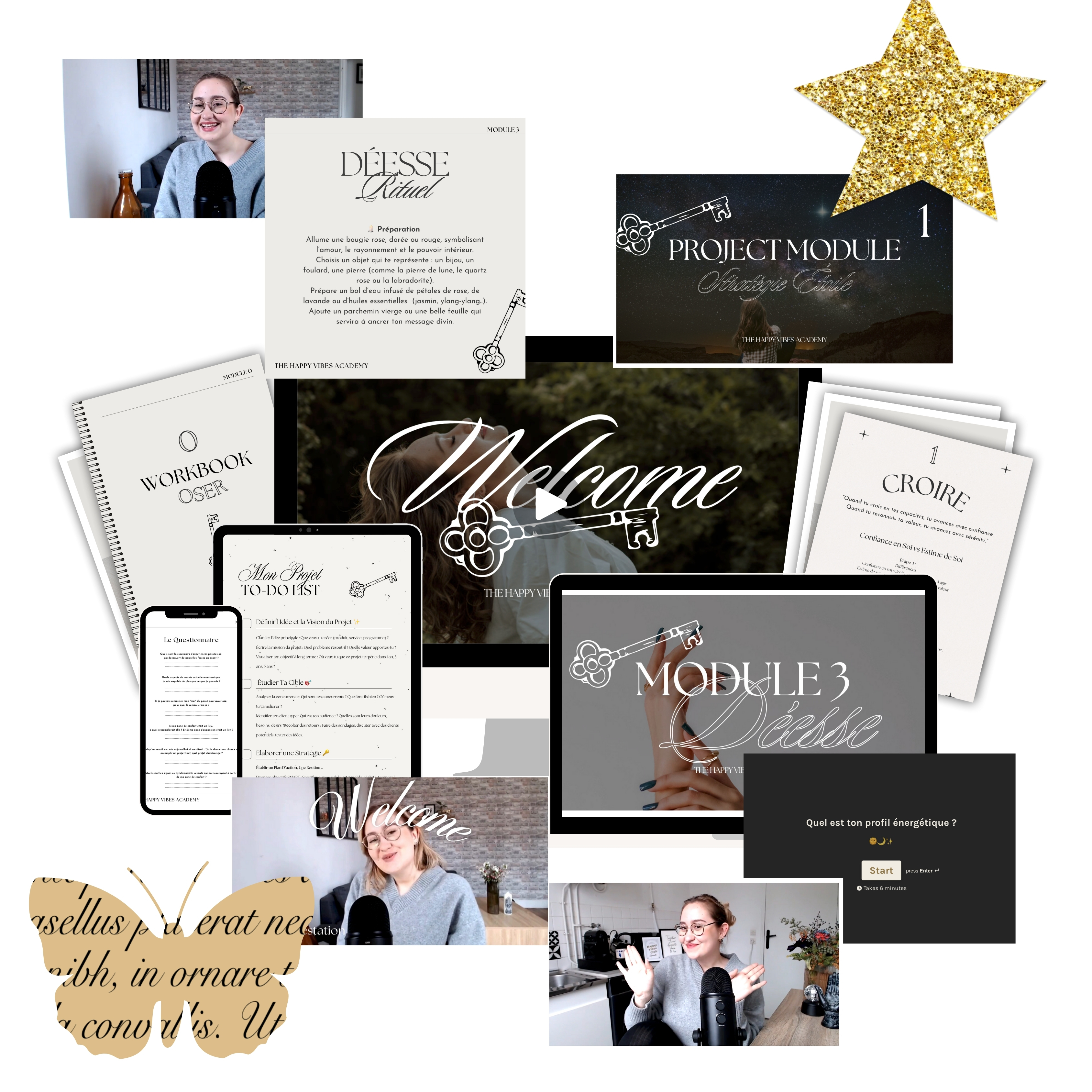 C’est pour ça que j’ai créé The Happy Vibes Academy. Un programme puissant, transformateur et profondément aligné, qui va te permettre de :