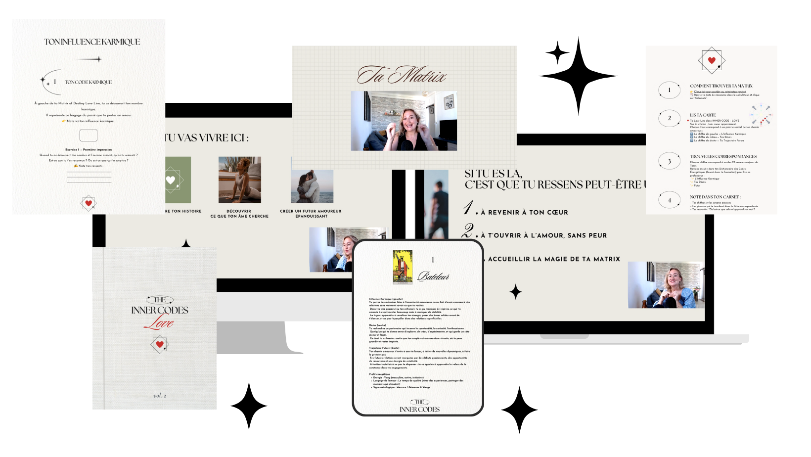 📓 Des workbooks pour explorer ton influence karmique, tes désirs profonds et ta trajectoire future, et comprendre comment ces codes façonnent tes relations.